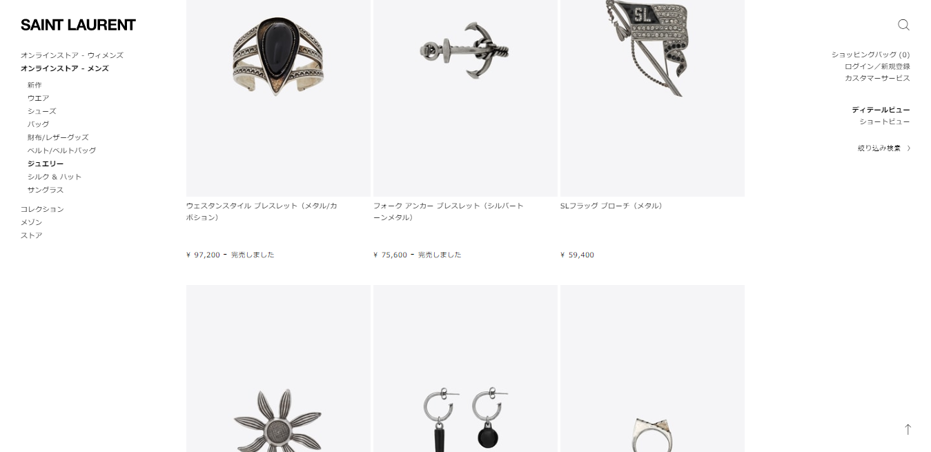 フランスのブランド「イヴサンローラン」では、アンティーク加工を施したシルバートーンメタルのブローチを発表しています。