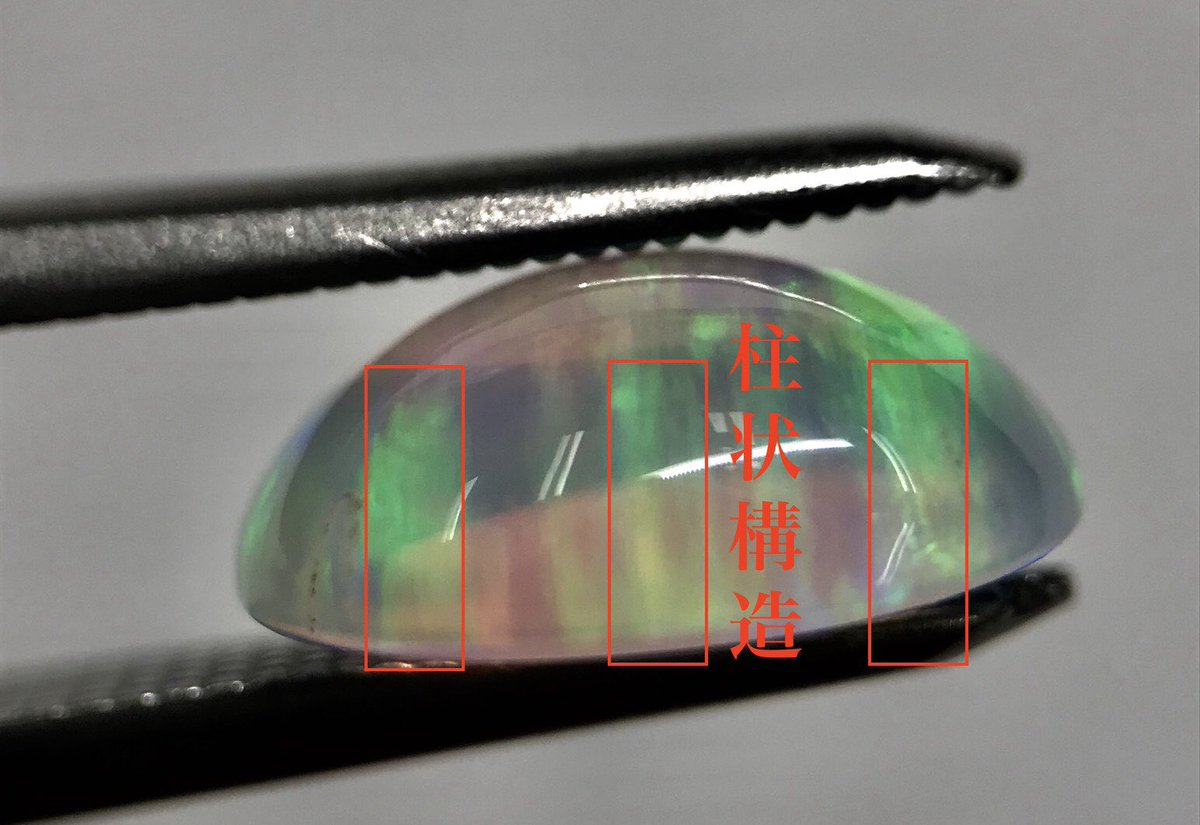 柱状構造は合成オパールによく見られる、特徴的な現象なのだそうです。