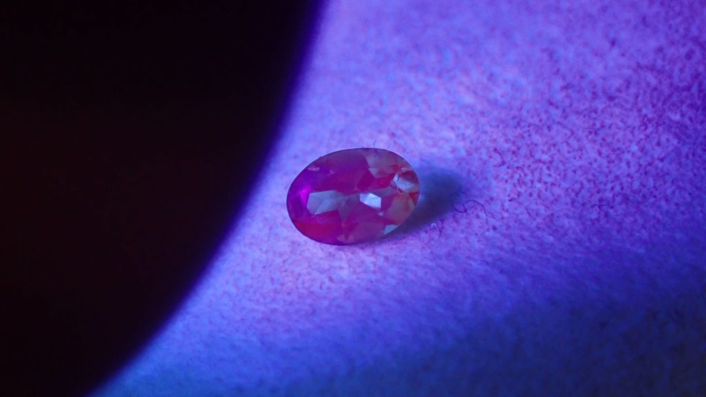 そして、アレキサンドライトは赤く蛍光するのですが、それはカラーチェンジとは関係ありません