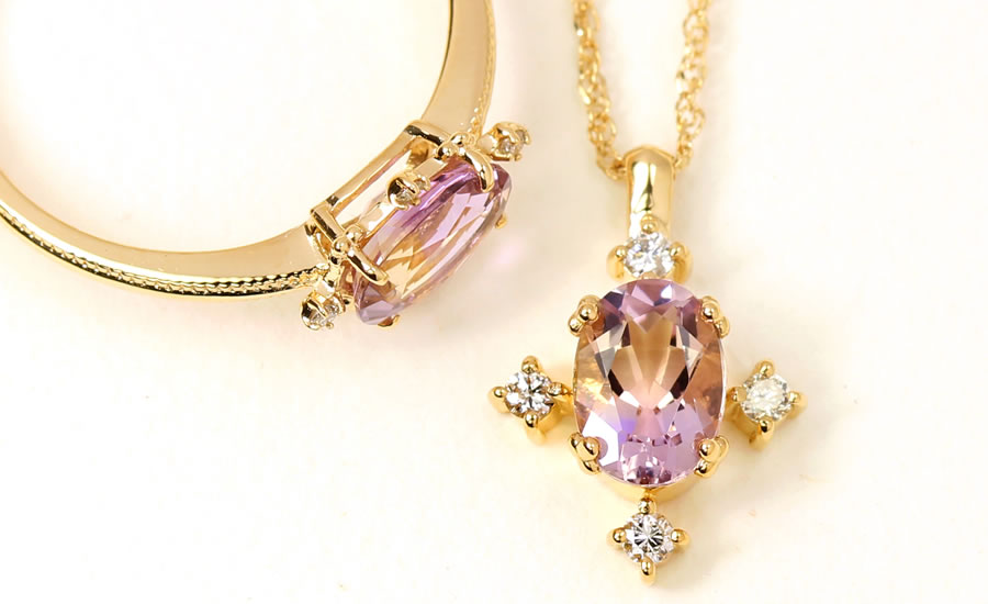一つの結晶の中に二色が存在する、不思議な宝石アメトリン。