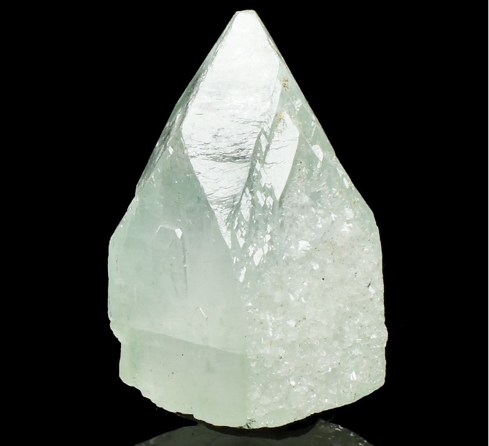 クォーツは六角形、六角柱であるのに対し、アポフィライトは四角形、四角錘です。