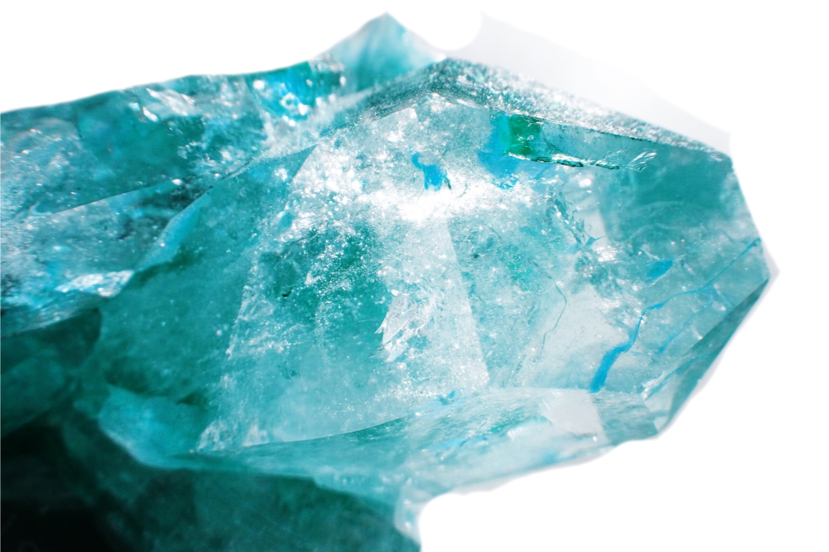 ベリルに微量のクロムやバナジウムが加わるとグリーンを発してエメラルドになり、鉄分が加わると水色を発してアクアマリンになります。