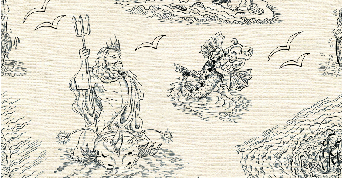 古代ローマでは、アクアマリンは海の神ネプチューンに捧げられました。ギリシャ神話に登場する海の怪物セイレーン。美しい歌声を持つセイレーンの宝石箱からブルーの宝石がこぼれ落ち、海岸に流されます。これを拾ったのが、ネプチューンでした。船乗りたちは、アクアマリンにネプチューンの姿を彫り、海の危険から保護してくれる護符として大切に身につけるようになったのです。