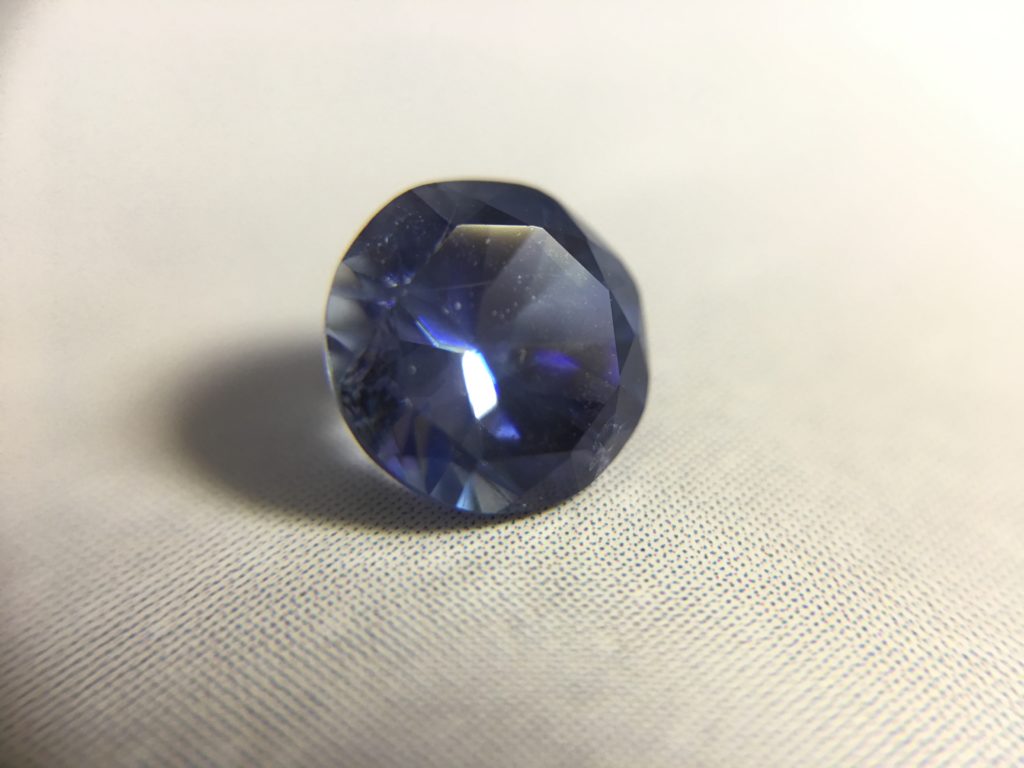 タンザナイトのように角度によって見える色の変わるはっきりとした多色性をもち、少し紫がかった色あいが特徴です。見る角度によっては無色透明に見えたり、濃いブルーに見えたりするので、いつまで眺めていても飽きません。