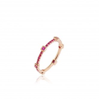 ピンクサファイアがリング全体に配されたフルエタニティリングです。重ね着けできるデザインで、ホワイトダイヤモンドやブラックダイヤモンドが配されたものも揃います。