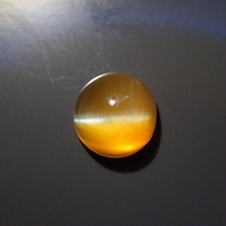 石の真ん中に猫の目のようにくっきり浮かぶセンターライン。このラインをキャッツアイ、専門用語で「シャトヤンシー」効果と呼びますが、実はこれは針状の内包物がある宝石を丸くカボッションカットすれば、全てに出る現象です。
