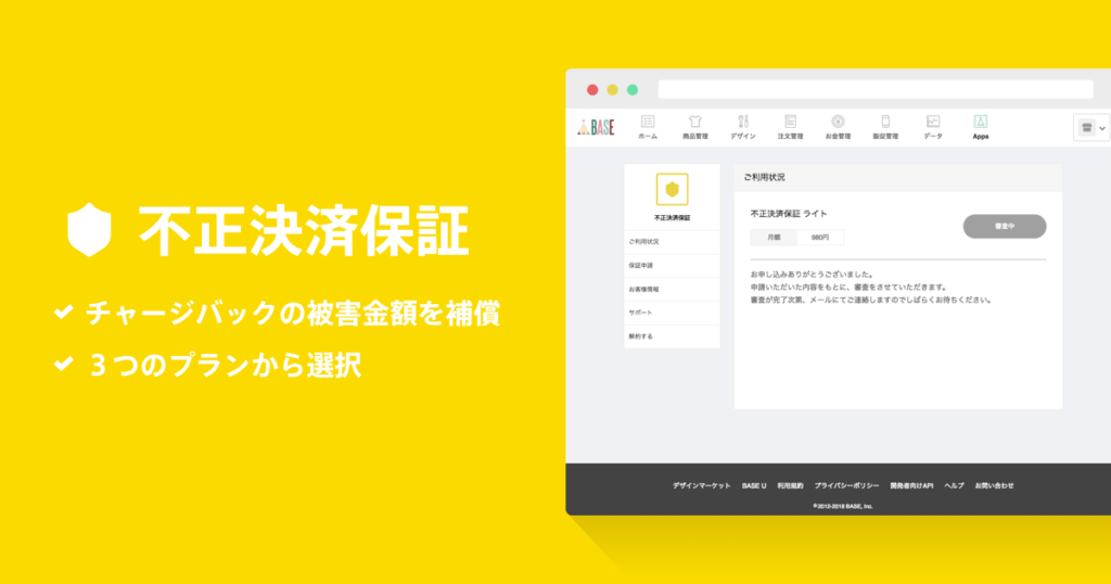 またBASEの場合、チャージバック被害に対する「保険」もあります。