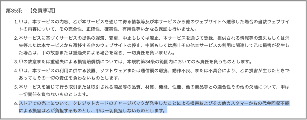 こちらの規約の「免責事項」をご確認ください、という対応でした。
