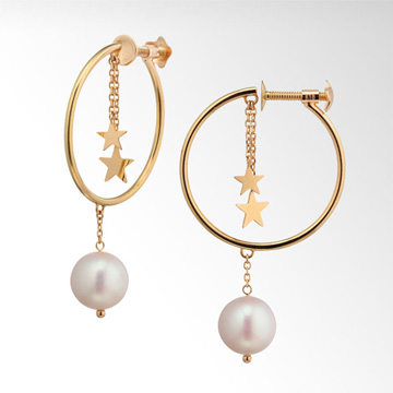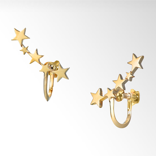 耳たぶに沿うフォルムで、トレンドの着け方が楽しめるユニークイヤリング。ちりばめられた星が耳元をよりいっそう華やかに演出します。