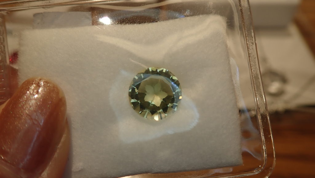 そして、彼女がそのお店でギュウギュウになっている間、私は向かいのお店で話題のゴールドシーンサファイアを見せてもらっていました。