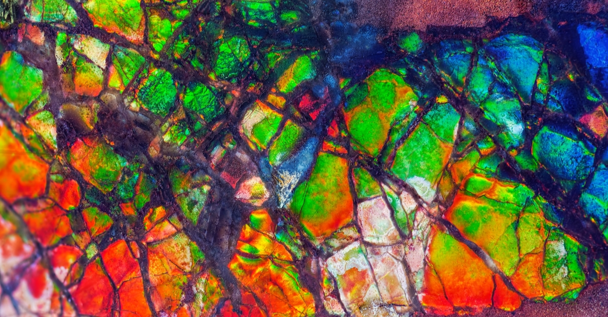 宝石の中には、昔生きていたものもあります。それが、アンモライトという宝石。これは、一度化石となったアンモナイトが長い年月をかけて、オパールのような輝きを得たものです。