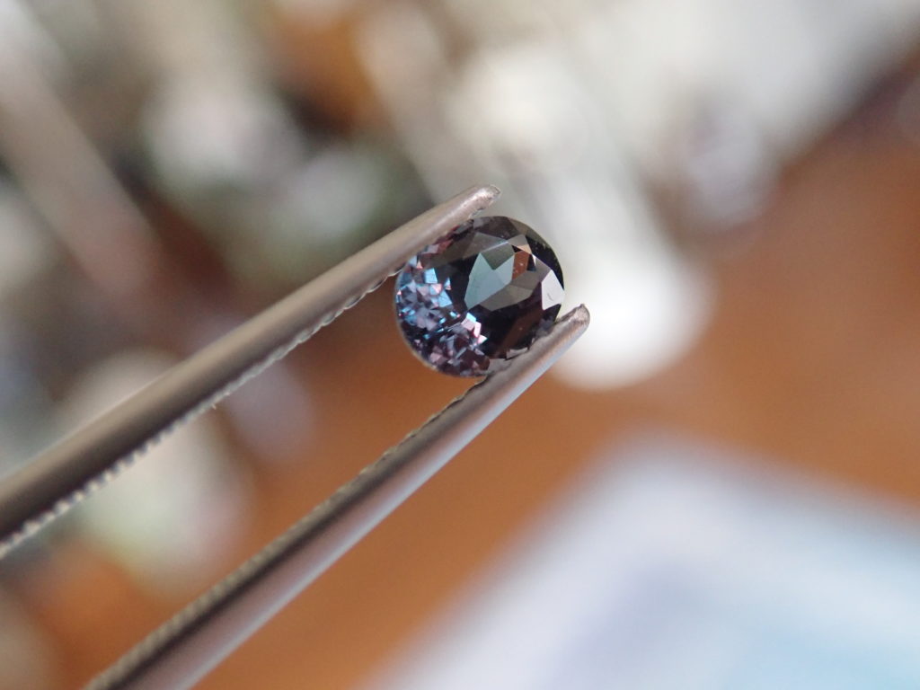 最近、加熱の美しいタンザナイトと非加熱の優しい色合いのタンザナイトを見比べる機会があったのですが、非加熱の方は角度を変えるたびに激しく色が違って見える傾向にありました。