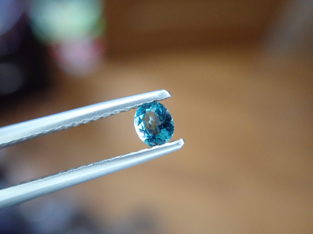 微妙な色合いは、サンタマリアアクアマリンやグリーントルマリンと似てはいますが、少し印象が違います。やはり、その独特な輝き方のせいではないでしょうか。