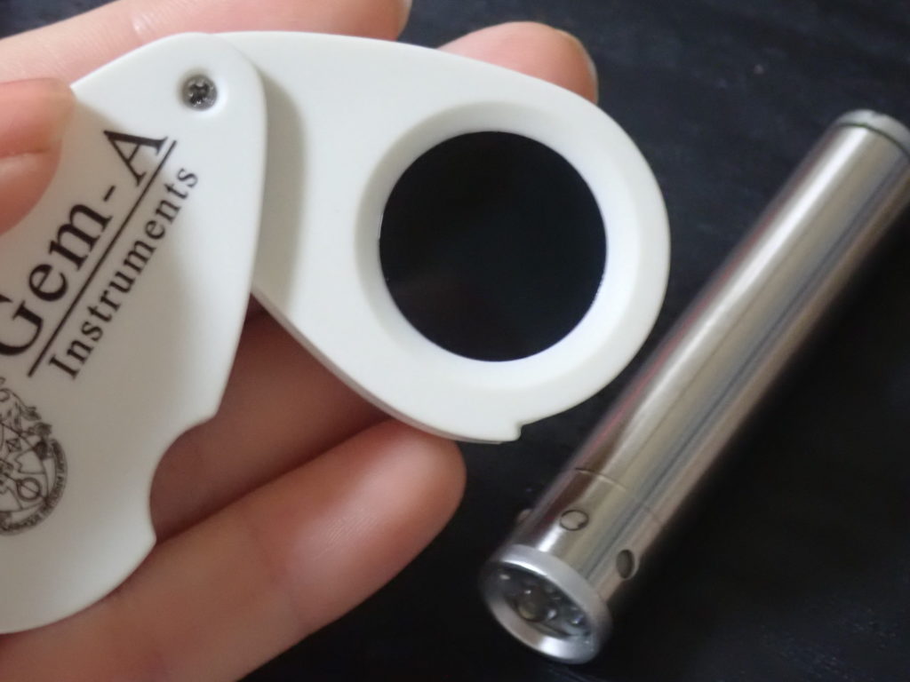 使い方は簡単で、アレキサンドライトを赤紫に変化させる時のライトを当てて、フィルターを覗くだけ。
