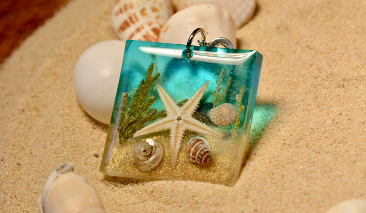 レジンを型に流し込み、プラスチック、スワロフスキー、ラメ、ガラスなどのお好きなパーツを入れて、UVライトを当てるだけで完成します!