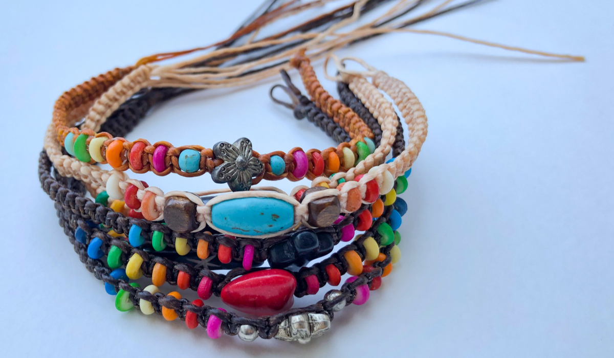 雑貨屋さんやパワーストーン屋さんでよく見かけるような、数珠状に天然石が連なった伸縮性のあるブレスレットというと、イメージがつきやすいでしょうか。