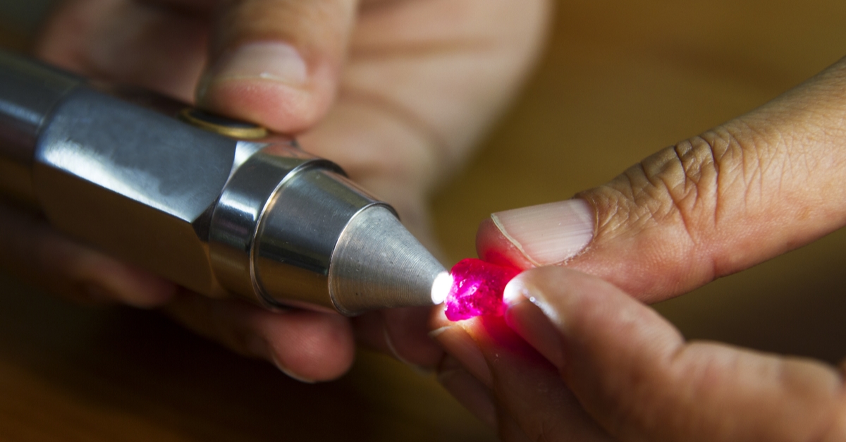 ルビーの赤色やサファイアの青色がくすんでいたり、色ムラが激しい場合は、加熱処理によって色と透明度を整え、美しく仕上げます。