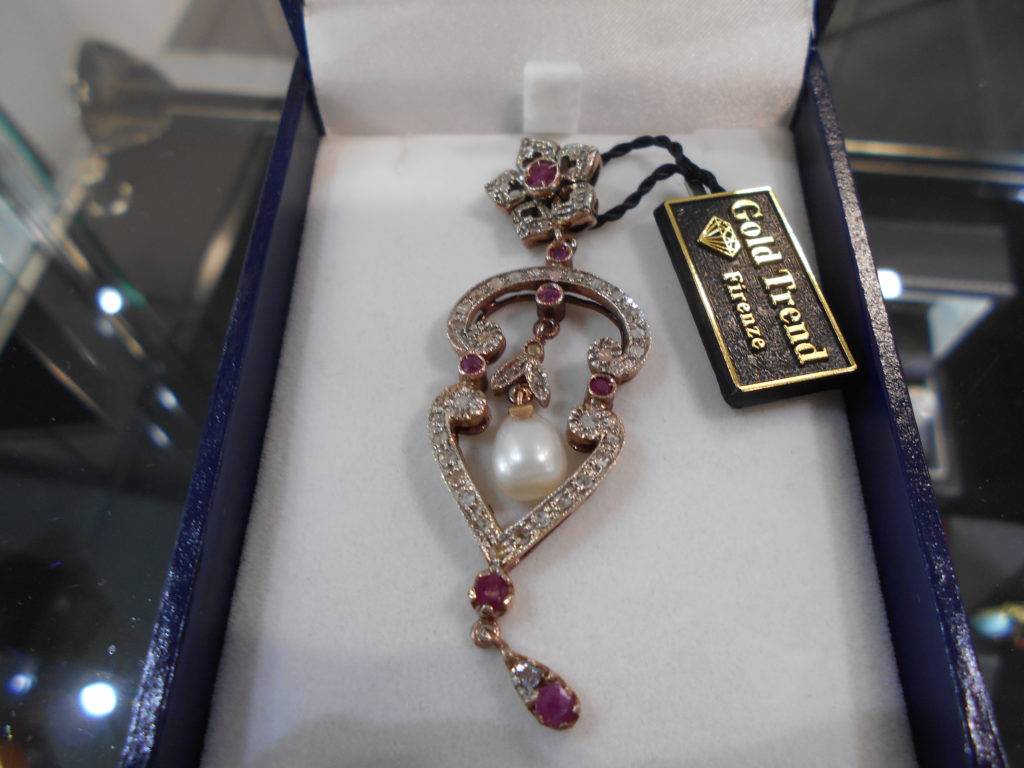 写真:Florence Jewellery で見つけた、バロックパールとルビー、ダイヤモンドのチャーム。価格700ポンド(約10万円)。