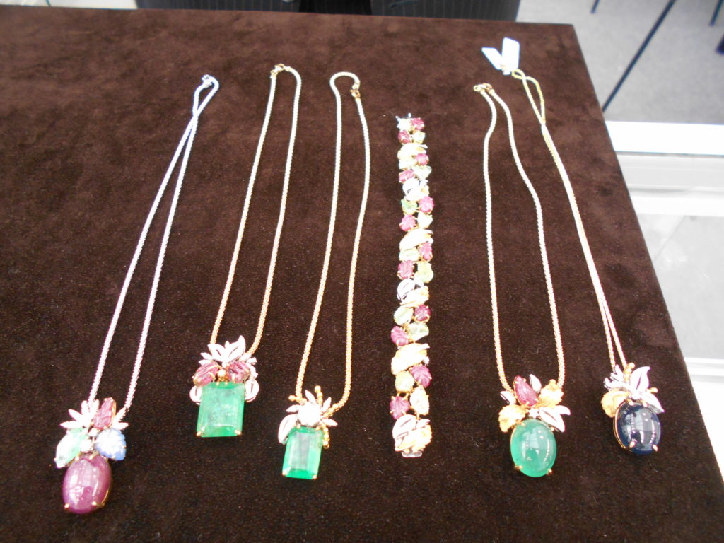 このほかのコレクションも、カラフルな色石をあしらった芸術的な作品が沢山並んでいました。イタリアのディーバが華麗に装う姿が目に浮かびそう…。