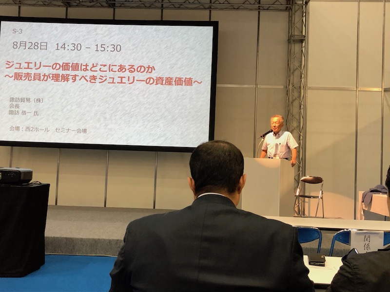 こちらのジャパンジュエリーフェア(JJF)、開催日はだいたい8月末の平日の3日間ですが、会社を休んでも来る価値あります。なぜなら、会場内で毎日多彩なセミナーが開催され、全て無料だからです。