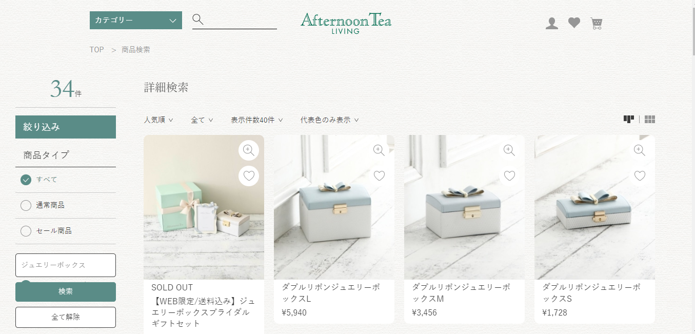生活雑貨や紅茶、ギフトアイテムなどを扱うアフタヌーンティーでは、フェミニンな色やデザインのジュエリーボックスを展開しています。
