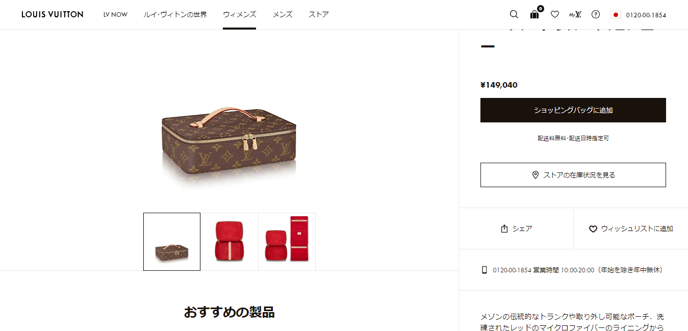 ルイ・ヴィトンが展開するのは、ジュエリーボックス「ニース・トゥルースビジュー」。ブランドを代表するモノグラムのデザインで、持ち運びできる便利なタイプです。