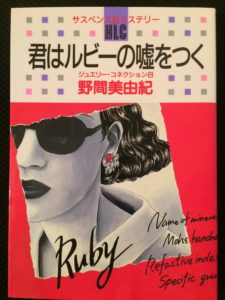 今回ご紹介する「ジュエリーコネクション」シリーズは12巻完結ですが、今回私が手に入れられたのは『ピンキーリング』『香港翡翠幻想』『君はルビーの嘘をつく』そして新ジュエリーコネクション『アダマンドの砦』の4巻のみ。(今から20年位前の作品なので、全巻手に入れるのは難しいのかも……。)