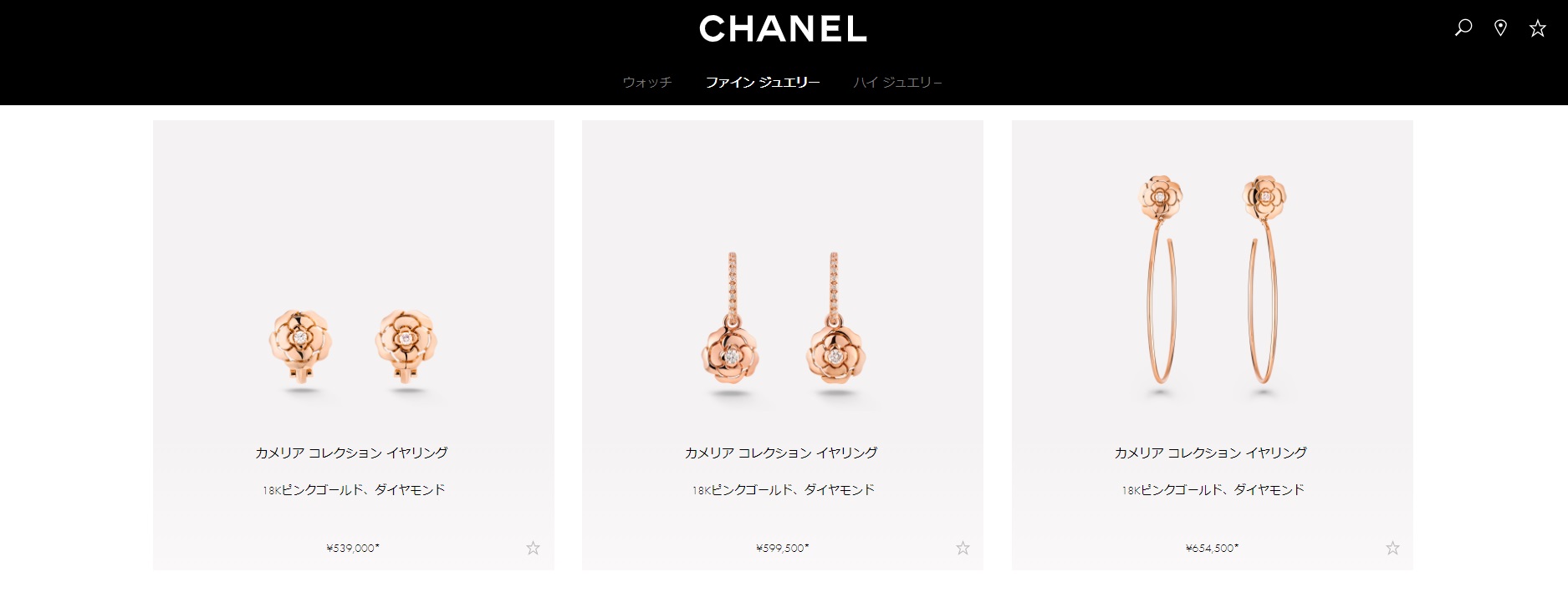 [人気品目/シリーズ] カメリア、ココ クラッシュ、コメット、CCマーク[使用素材] イエローゴールド、ホワイトゴールド、ダイヤモンド、パール ほか