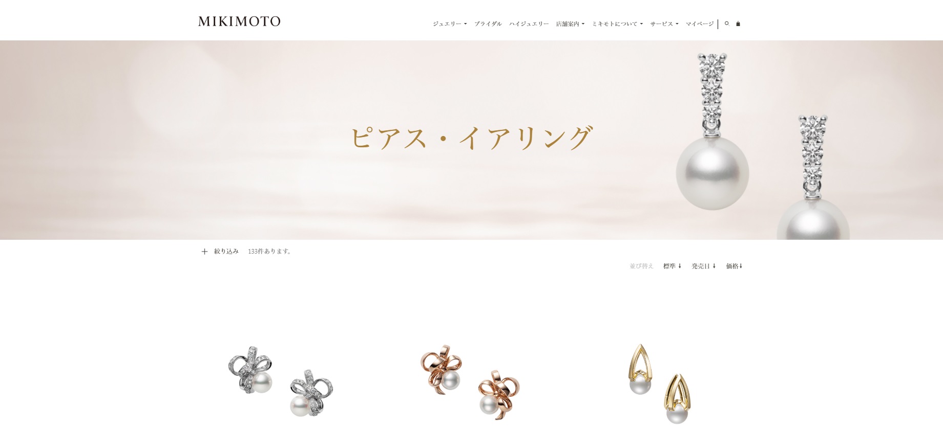 気品溢れる上質なデザインが豊富で、パールピアスはもちろん、モチーフにパールやダイヤモンドが添えられた繊細なデザインも人気です。