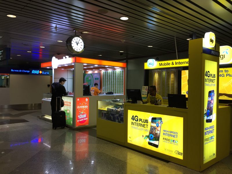 マレーシアはクアラルンプールの空港でフリーSIMがいっぱい売っています。取り付けもお店の人がパパパっとやってくれます。