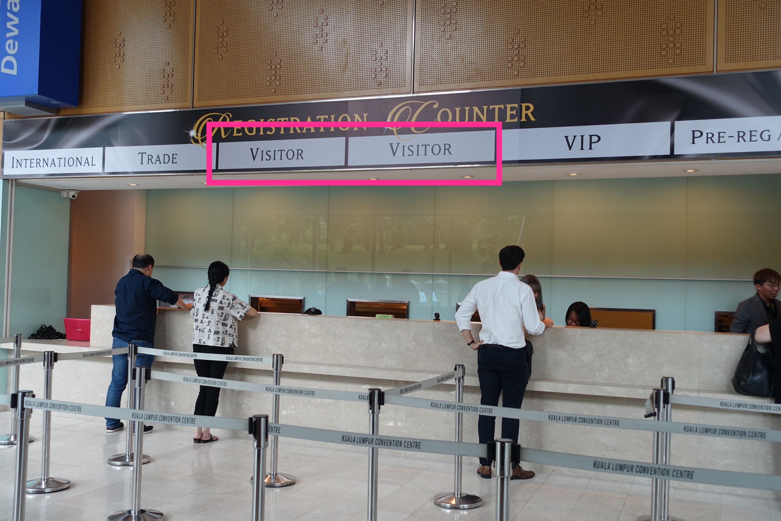 会場でも入り口に「VISITOR」というコーナーがあるので、こちらで身分証明書や名刺を出せば問題ありません。