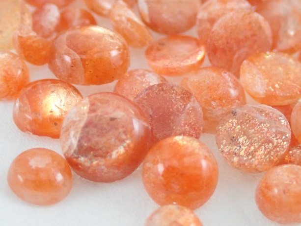オレンジの地色にインクルージョンが煌めくまるで太陽のような宝石、サンストーン。