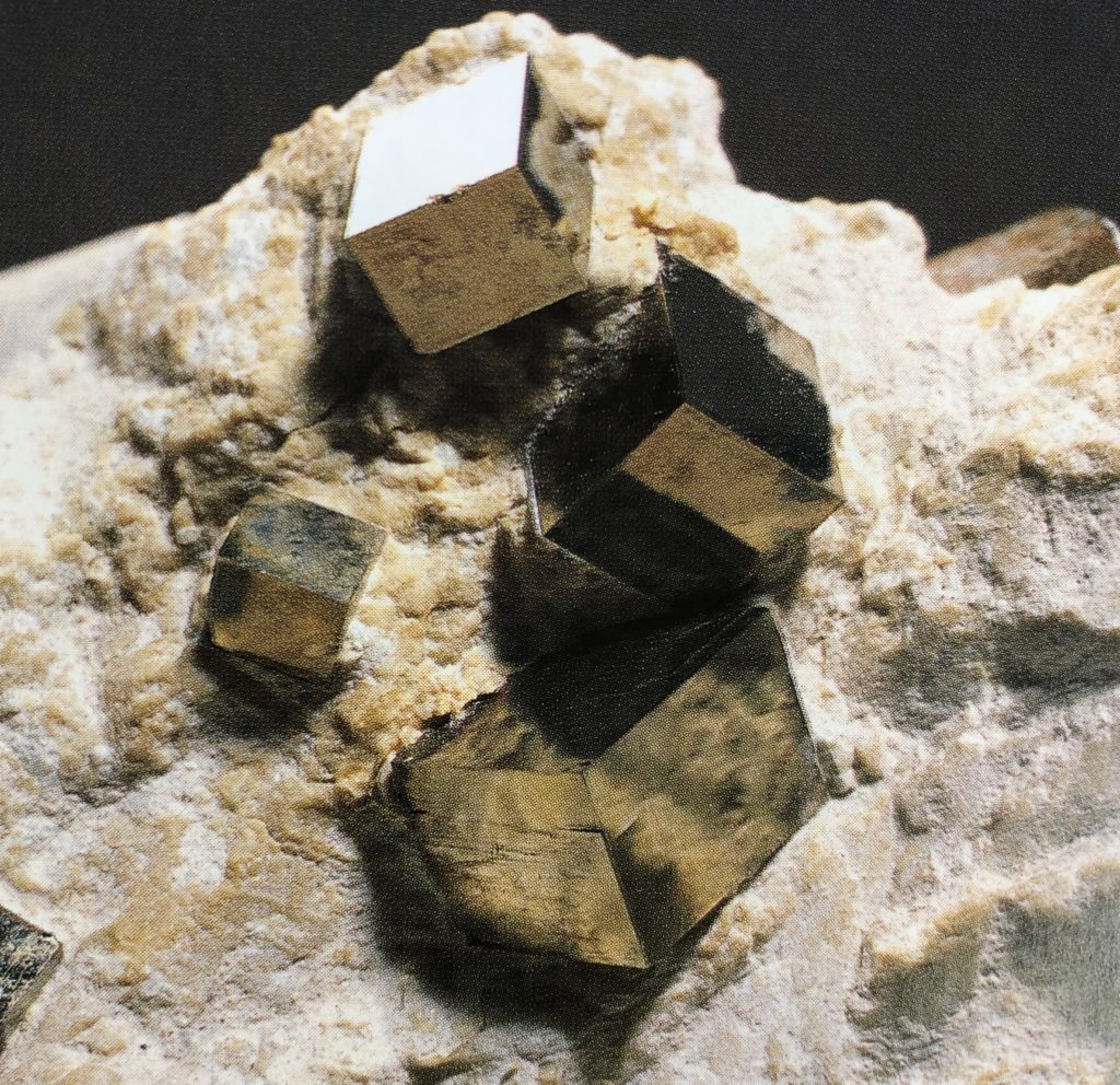 パイライトはその珍しい見た目から大変希少価値の高い鉱物だと思われがちですが、実は世界中のほとんどの金属鉱山で普通に産出される金属鉱物です。多くの岩石の中に含まれているという、とてもポピュラーな鉱物。