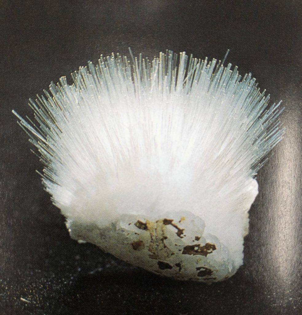 このソーダ沸石の特徴は、ソーダのように水蒸気を発するだけではありません。ソーダ沸石は、針状の結晶が固まって放射状に集合することが多いので、まるでお花のように美しいのです!