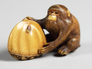 最初は木の根っこなどから作られていた根付ですが、芸術品として流行するようになると、動物の牙が材料に使われるようになりました。