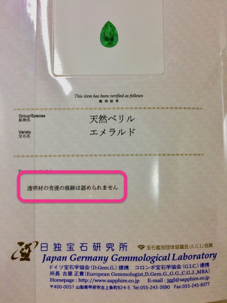 「ノンオイルエメラルド」を買うときのチェックポイント②「鑑別書の中で見るポイントはココ!」