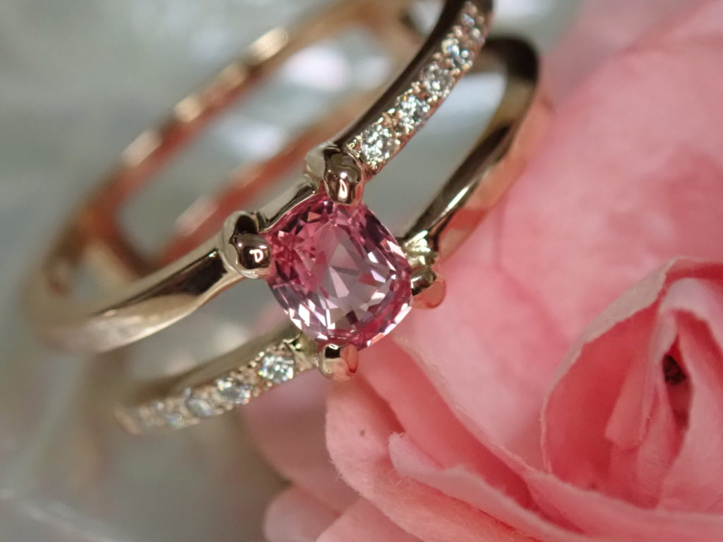 ちなみに画像のパパラチアサファイアはピンクが強めなので、太陽光でオレンジが強くなって、可愛らしいオレンジピンクになります。