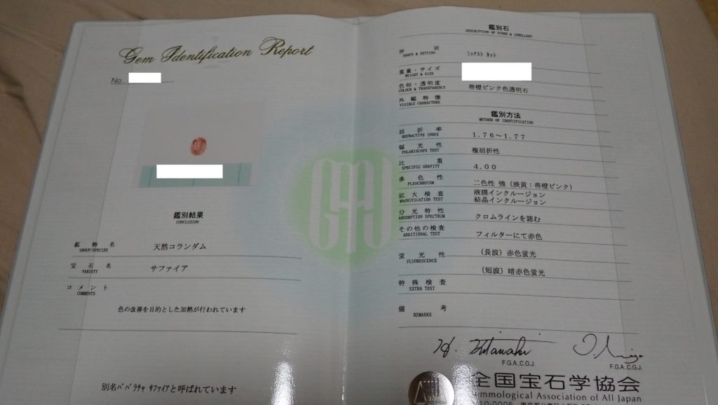 こちらは、今はなき「全国宝石学協会」の鑑別書。