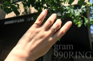 このペアリング、外側はプラチナカラーですが、内側にイエローゴールドコーティングが施された2色展開。指輪のカラーも「ペア」なんです。