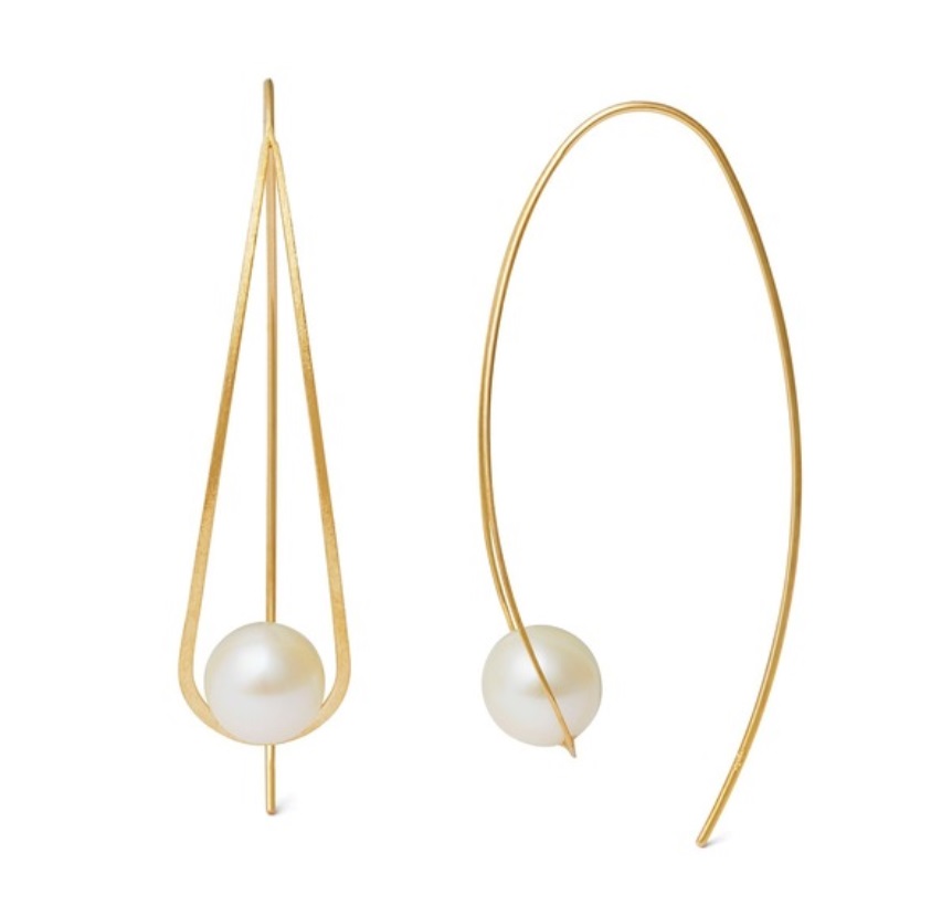 カーブを描く地金がパールを支えるデザイン。華奢ながらもサイズ感もありモダンで華やかなので、普段使いだけでなくパーティシーンにも活躍します。