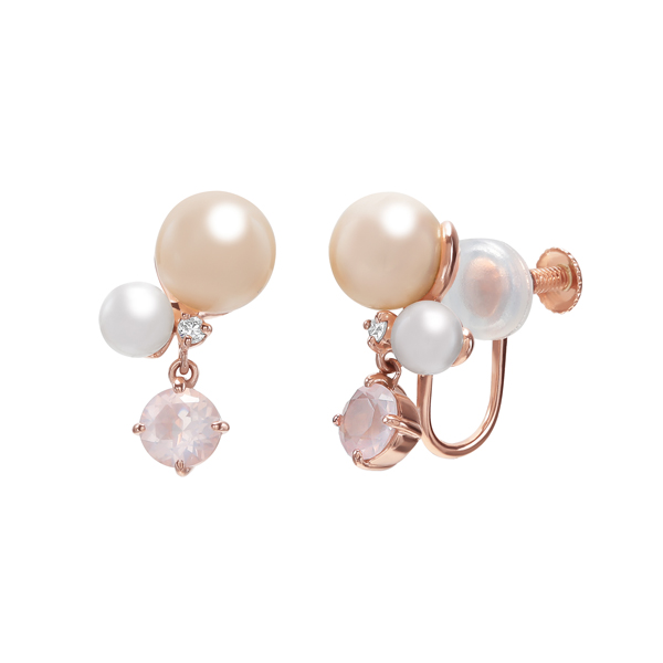 淡水パールの中でもピンクがかったピンクパールとホワイトパール。そしてローズクォーツとダイヤモンドが添えられ揺れるデザインは、愛らしくも華やか。パーティーシーンできっと活躍してくれることでしょう。