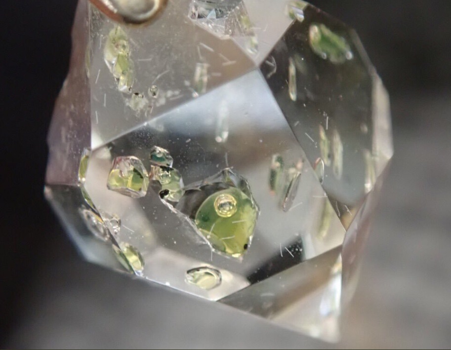 石油に含まれた空気が気泡となってクォーツの中で、コロコロ転がるのですが、宝石の中に液体が目に見えて内包されている様は、なんだかかわいい…!いつまでも見つめていられる魅力があります。