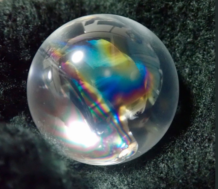 球体に研磨したレインボークォーツは、まるでシャボン玉のよう!