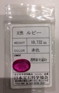 ルビーは必ず鑑別書と一緒に購入してくださいね。