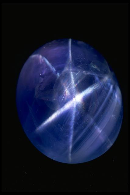 ブルーのものは見事なロイヤルブルーで透明度も高いのですが、それゆえにスターが弱く、残念ながら端まで光が伸びておらずに、中央部分に現れるのみなのです。