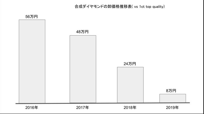 先述の通り、それまでの合成ダイヤモンド相場を大きく崩すほどの低価格設定により、世界の合成ダイヤモンド相場もぐっと下がりました。