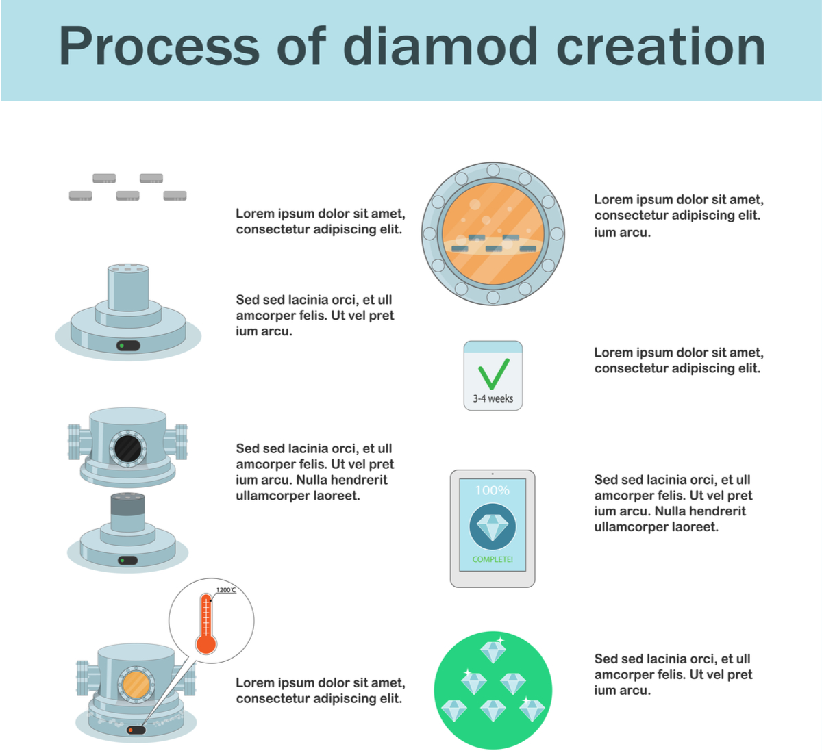 つまり、合成ダイヤモンドは、天然ダイヤモンドが数億年などの長い時間をかけて地中で成長するのと同じ環境を人工的な方法で数週間という短期間で施し作られたものなのです。