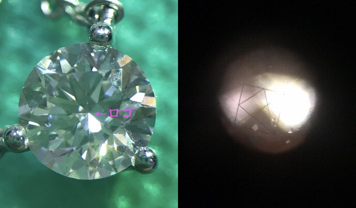 デビアス社の合成ダイヤモンドは、顕微鏡で観察すると、画像の様にレーザー刻印された”ロゴ”が見られます。