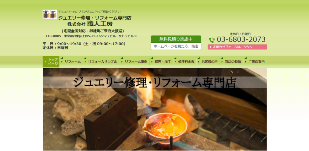 御徒町にあるジュエリー修理・リフォームの専門店です。経験豊富な職人技で、高品質・低価格・短納期のジュエリーリフォームを行っています。HP限定で無料見積もり、宅配は全国対応です。