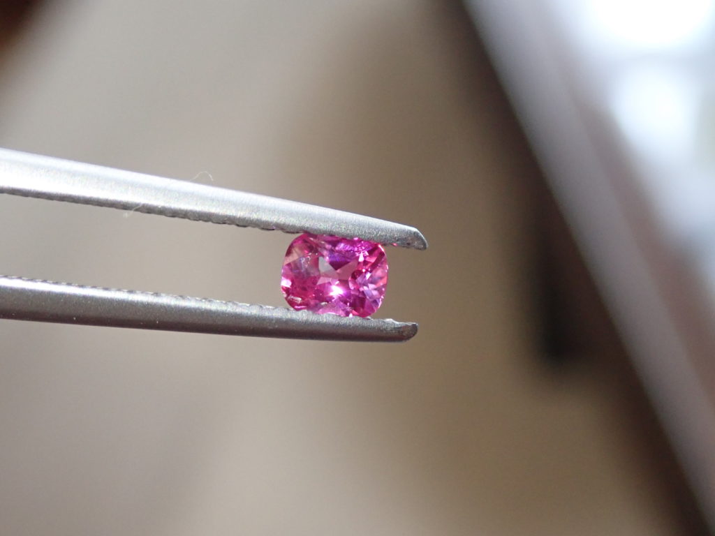 近頃、ホットピンクに惹かれていてスピネルばかり見ていたのですが、今回は小さいながらも美しいピンクサファイアと出会いました。